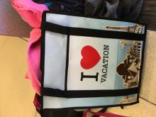 A shopping bag with zipper that reads I ❤️ Vacation