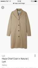 Beige coat. Brand name "hope". Material poplin. In the pocket were a pair of black leather gloves with a zipper.