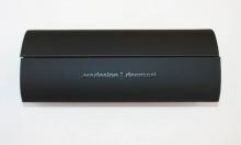 Black reading glasses in a black hard case. "prodesign denmark" embossed on case.