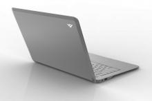 Silver Vizio laptop. 12"x15" with dent on front edge near trackpad. Case is hunter green denim with orange liner. Laptop is without charger. Passcode to open is "theladg"
