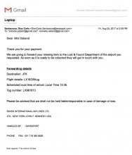 Lost Item No.: 1077805 - John F Kennedy International Airport, New York, US