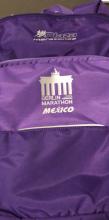 Purple back pack; plaza marathones legend and Berlin marathon sign