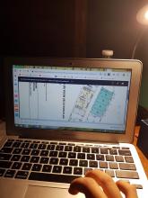 A metalic silver Macbook with 11 inches screen, having some small scratches all over the screen and body. No cáe. It is currently in sleep mode unless no one touch it, and by the time turning on, it can be view running Window software along with the pop up name Khiem Bui in the password locked screen.