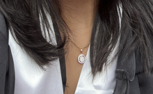 A round pendant, about a quarter-inch in diameter, encrusted with diamonds. The outer circle has a tiny heart of gold. My best estimate would be that it fell somewhere between the Departure entry where the cabs drop-off passengers as well as the check-in area of Kuwait Airways, Terminal 7.