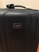-One black hard sided Bugatti suitcase (black name tag attached as well as yellow ribbon)