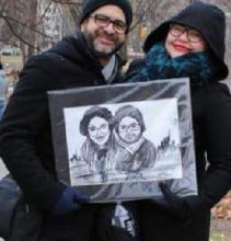 Black and white caricature painting. Lost it on the men's bathroom on Terminal 8 near gate 44