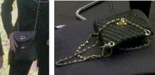Black hangbag with a golden chain with passeport, ID, keys, I-phone, red/orange wallet and several hundred dollars inside
