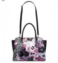 Medium size purse black with pink flowers on the both sides, the label of the purse is MARY KAY.