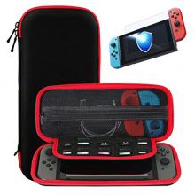 Nintendo Dwitch in Black Protective zipped case. The device and several game discs are inside.