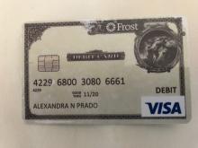 Frost Bank Debit Card belonging to Alexandra N Prado. Believe to be left at O’Neal’s.