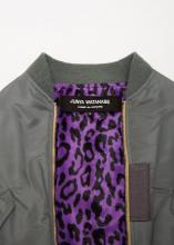 green bomber jacket with purple leopard lining. junya watanabe tag.