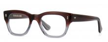 Brown and clear heavy plastic men's Cutler & Gross prescription eyeglasses. In a thick black rubberized oblong "clamshell" case with round corners.