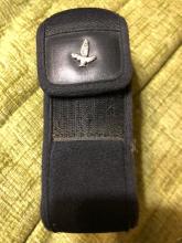 A Swarovski binocular booster attachment. It's in a black cloth case 5 1/12 inches long x 2 inches wide and 1 inch deep with a Swarovski eagle insignia.