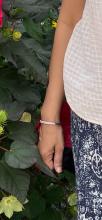 White gold hinged bracelet/bangle with diamonds on 1/2 of it. The picture below is not great, but it's of me wearing both bangles (one came off my wrist in the airport and I did not notice at the time).