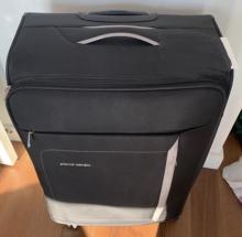 A black Pierre Cardin suitcase. It didn't have a lock, there was just a small green ribbon wrapping the two zippers together.