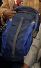 Lost Backpack, Back pack is Blue and some part is Dark blue and it had a Gray vertical stripe .Got lost during transit from JFK airport to LAX .