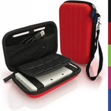 Small Red Hard drive case with black zipper - two hard drives inside - one burgundy one black - black hard drive has my name and probably phone written on it in white.