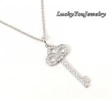 White gold chain necklace with one-inch long diamond Tiffany "key" pendant!
