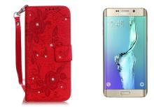 The mobile phone is a Samsung Galaxi S6 edge Plus (telephone number 0044 7990 384691), gold colour, and with a red cover like this one: