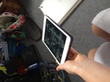 White Apple iPad with purple cover left in the front seat pocket on my flight DY7014 from London to NY. Sat in front of premium economy class on seat I.
