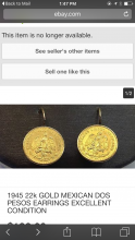 Yellow gold earring made from Mexican peso coin
