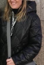 Hooded quilted anorak in black, brand “Bimba y Lola”, size M. It has a ribbon in white with the name of the brand to adjust the hood.