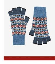 A pair of cashmere fingerless gloves, fairisle pattern. Colours not identical to the image but the style and pattern are the same
