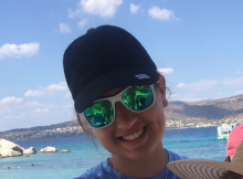 Black baseball hat with Greek flag embroidered on left side of the bill.