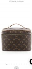 Louis Vuitton travel pouch-purse filled with toiletries.