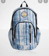Blue tie dye billabong backpack. Children’s books and games inside, lost on air train