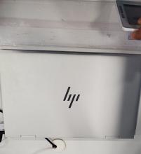 silver HP laptop x 360 2 and 1 convertible. 15.6 touch screen. terminal 5 security check point