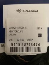 I flew into JFK on Air Serbia flight JU500 from Belgrade on Sept 1. I had a connecting flight on Delta with only 2 hours. When I went to the baggage carousel the luggage had not come off yet and I could not wait. So I left to get my flight home to PHX on Delta DL829. I am trying to find my bad. It had an Air Serbia tag UNLJHM and 5115 JU793474.