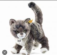 Gray striped stuffed cat lost in Terminal 5 near gate 25. Cat is about 1 foot long with blue eyes and lashes. She had a gray bow on her ear. Lost 11/2/22. The photo is similar, but not exact.